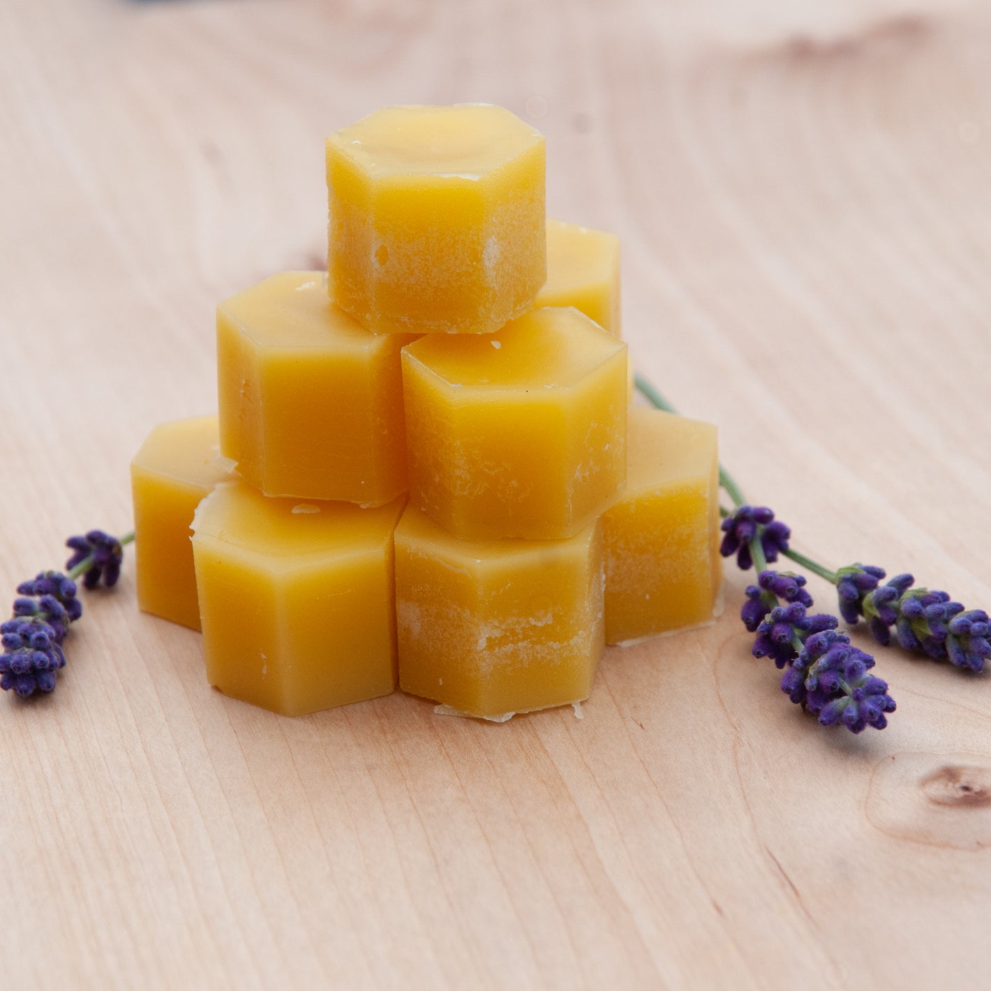 Täckvaxet, det vax som bina tillverkar för att täcka honungscellerna med, tar jag varsamt bort innan slungning. Vaxet smälts sedan ner och silas några gånger innan jag gjuter små vaxklumpar av det. Täckvaxet kan användas till tillexempel hudvård, tvåltillverkning, bivaxdukar eller trä- och läderbehandling.